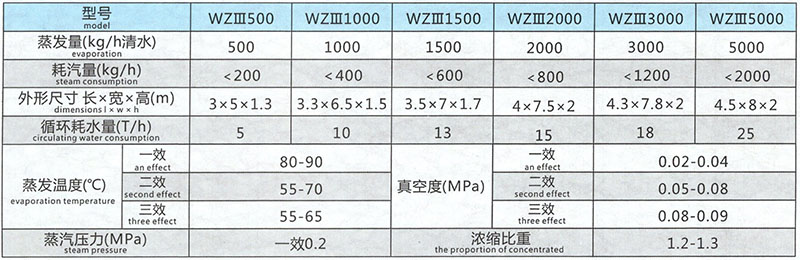2、本濃縮器采用三效同時蒸發,二次蒸汽得到反復作用,既節省了鍋爐的投資,又節約能源消耗,耗能低。